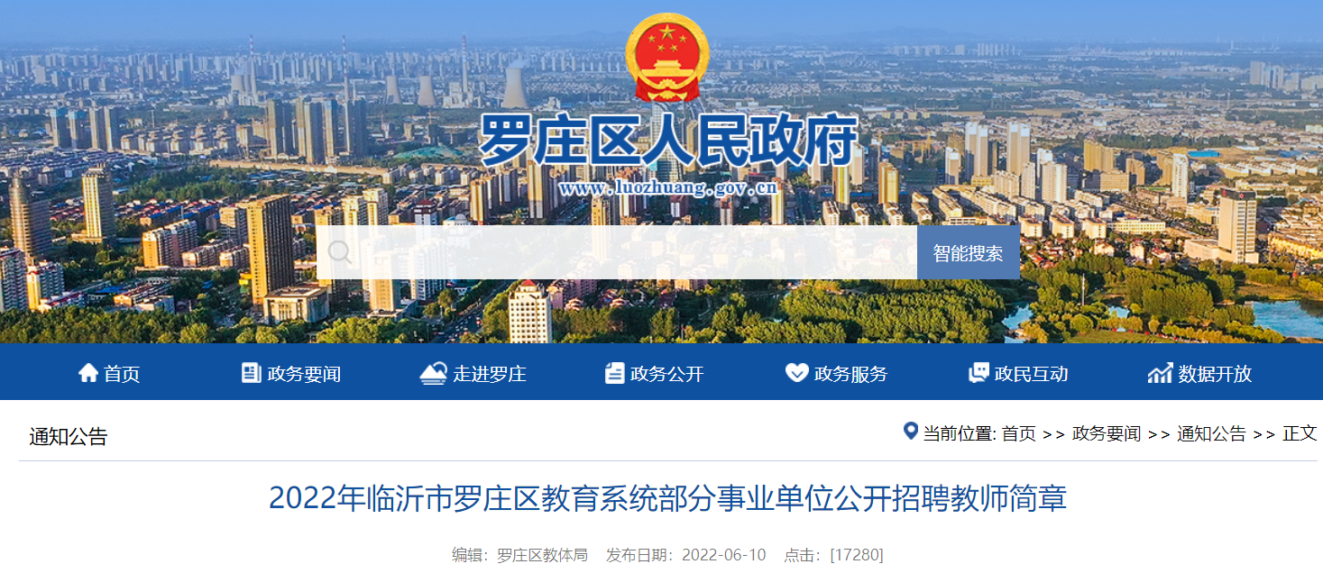 2022山東臨沂市羅莊區(qū)教育系統(tǒng)部分事業(yè)單位招聘教師376人,報名時間:6月22日9:00—6月25日16:00?,F(xiàn)將招聘公告原文發(fā)布如下: