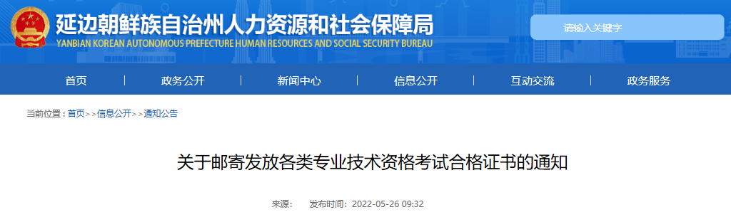 鑒于延邊州目前疫情嚴(yán)峻,根據(jù)省州疫情防控有關(guān)要求,下列專業(yè)技術(shù)資格考試合格證書繼續(xù)以郵寄方式發(fā)放。