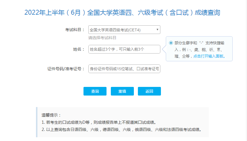 點擊進入>>>2022上半年西藏英語四級成績查詢?nèi)肟?/u>