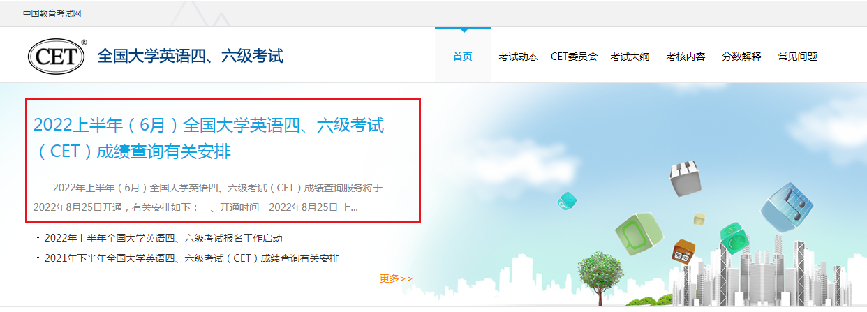 從中國教育考試網(wǎng)發(fā)布的《2022上半年全國大學(xué)英語四六級考試成績查詢有關(guān)安排》得知,2022上半年西藏英語四級成績查詢時間、方式及入口已公布,8月25日可查分,具體詳情如下: