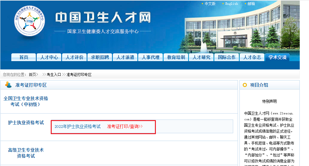 點(diǎn)擊進(jìn)入>>>2022年護(hù)士資格證準(zhǔn)考證打印網(wǎng)站