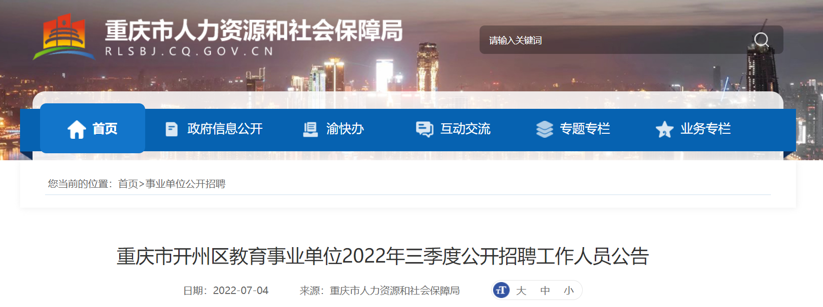 2022年三季度重慶市開州區(qū)教育事業(yè)單位招聘工作人員公告【133人】已發(fā)布, 報名時間:2022年7月14日上午9:00時至2022年7月18日。為了方便考生報考,現(xiàn)將相關(guān)信息發(fā)布如下: