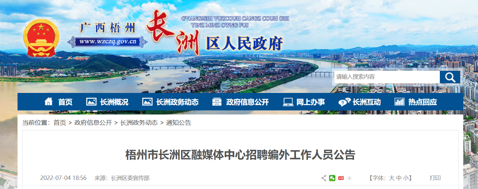 2022廣西梧州市長(zhǎng)洲區(qū)融媒體中心招聘編外人員公告已發(fā)布。報(bào)名時(shí)間:2022年7月5日至2022年7月12日(工作日上午8:00—12:00,下午15:00—18:00)?,F(xiàn)將招聘公告原文發(fā)布如下: