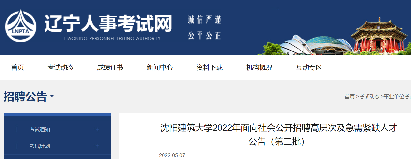 招聘人員崗位信息在遼寧人事考試網(wǎng)(www.lnrsks.com)和沈陽建筑大學(xué)人才招聘網(wǎng)站(http://rszp.sjzu.edu.cn/zp.html#/)上統(tǒng)一發(fā)布。