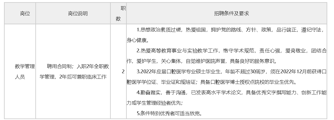 招聘政策和具體事宜可咨詢山西醫(yī)科大學(xué)口腔醫(yī)院人事科。