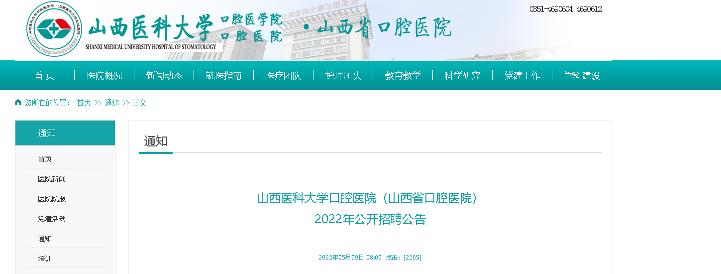 此次招聘所有環(huán)節(jié)信息均發(fā)布于山西醫(yī)科大學(xué)口腔醫(yī)院通知專欄。