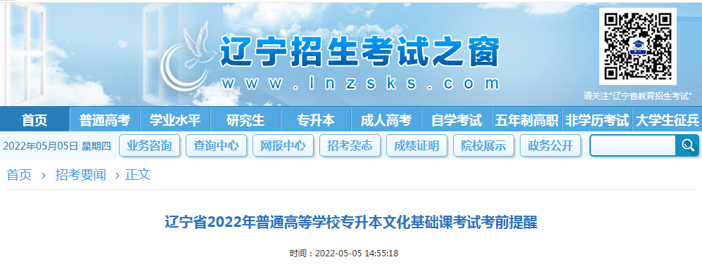 專升本頻道從遼寧招生考試之窗發(fā)布的《遼寧省2022年普通高等學(xué)校專升本文化基礎(chǔ)課考試考前提醒》了解到,遼寧阜新2022年專升本文化基礎(chǔ)課考試時間是5月21日-5月22日,詳情如下: