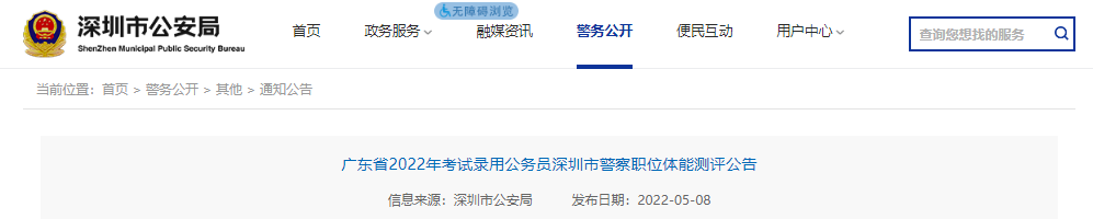 2022年廣東深圳市考試錄用人民警察職位體能測(cè)評(píng)公告已公布,為了方便廣大考生的查閱,下面為您詳細(xì)介紹一下本次人民警察職位體能測(cè)評(píng)的具體事宜,希望廣大考生及時(shí)關(guān)注,如有相關(guān)疑問(wèn),請(qǐng)關(guān)注招警考試頻道為您實(shí)時(shí)做出的更新。