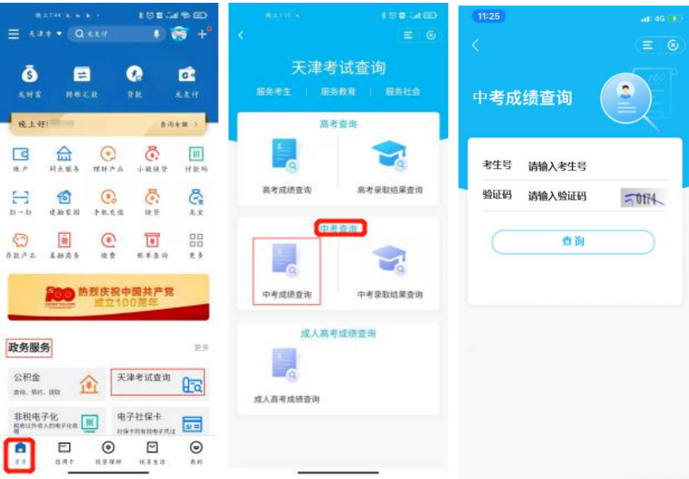 通過中國建設(shè)銀行APP查詢。登錄建設(shè)銀行手機銀行APP后,可通過“政務(wù)服務(wù)”或“微應(yīng)用”兩個入口進入“天津考試查詢-中考成績查詢”功能,即可進行查詢。
