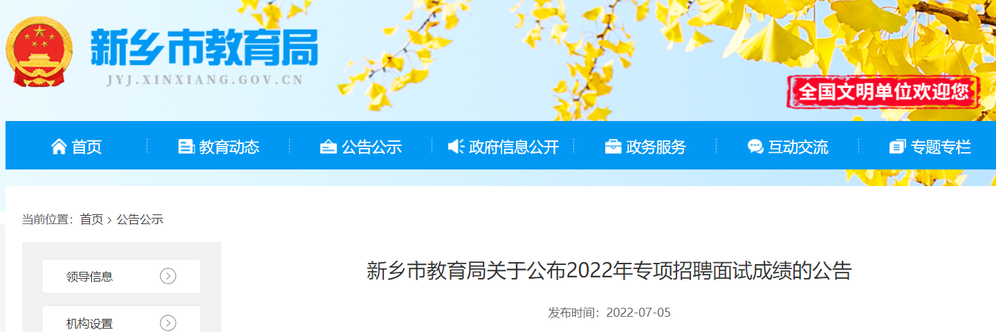 2022年河南新鄉(xiāng)市教育局專項(xiàng)招聘面試成績(jī)已公布,現(xiàn)將原文發(fā)布如下: