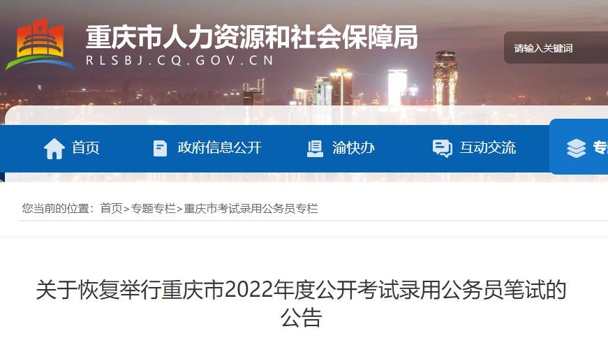 從重慶市人力資源和社會保障局發(fā)布的《關(guān)于恢復(fù)舉行重慶市2022年度公開考試錄用公務(wù)員筆試的公告》得知,2022年重慶雙橋區(qū)公務(wù)員考試時間定于7月9日-10日舉行,具體詳情如下: