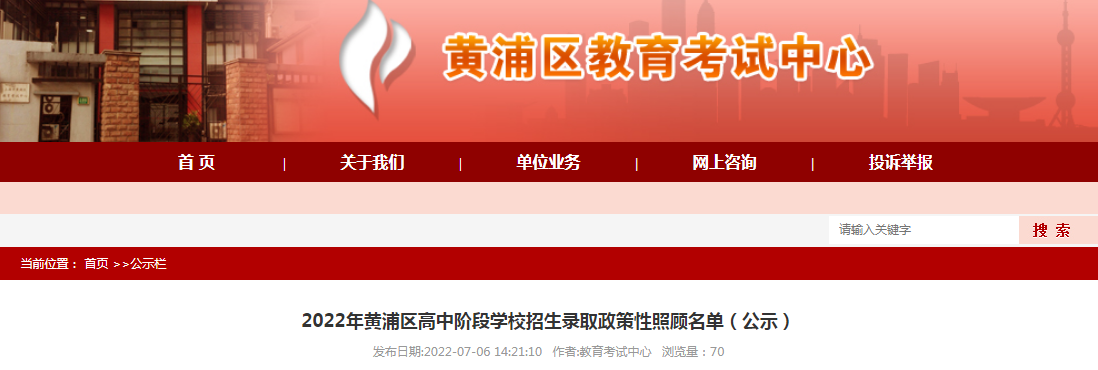 2022年上海黃浦區(qū)高中階段學校招生錄取政策性照顧名單(公示)已發(fā)布,請相關考生登錄黃浦區(qū)教育考試中心(https://zhaoban.hpe.cn/),或直接點擊下方鏈接進行查看。