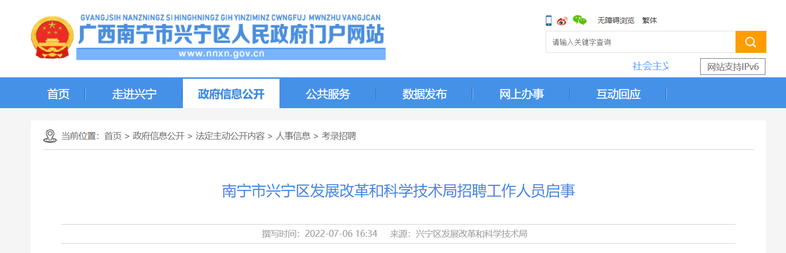 2022廣西南寧市興寧區(qū)發(fā)展改革和科學(xué)技術(shù)局招聘公告已發(fā)布。報名時間2022年7月6日至2021年8月5日?,F(xiàn)將招聘公告原文發(fā)布如下: