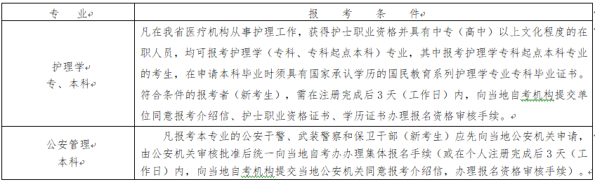下表所列專業(yè)對報(bào)考條件、報(bào)考程序有特殊限制,考生報(bào)考須符合下表具體規(guī)定;考生個人或社會助學(xué)單位違反報(bào)考條件限制規(guī)定報(bào)考,分別由考生本人或辦理集體報(bào)名的助學(xué)單位承擔(dān)責(zé)任,并將受到不承認(rèn)考試結(jié)果、不受理畢業(yè)申請的處理。