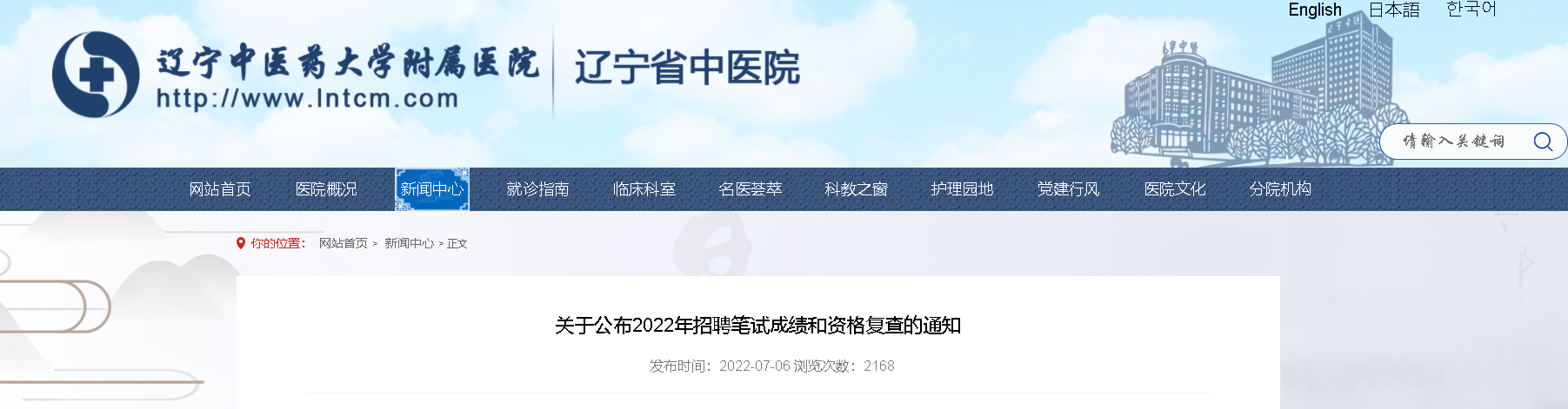 2022遼寧中醫(yī)藥大學附屬醫(yī)院招聘筆試成績和資格復查的通知已出,詳細請見文內(nèi),現(xiàn)將招聘通知原文發(fā)布如下: