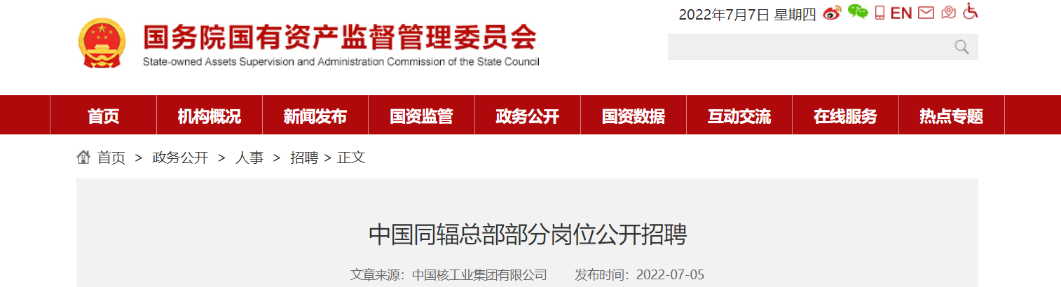 2022中國同輻總部部分崗位公開招聘簡章已發(fā)布。報(bào)名時(shí)間:即日起至2022年7月10日截止。為您整理了以下內(nèi)容,供您參考。