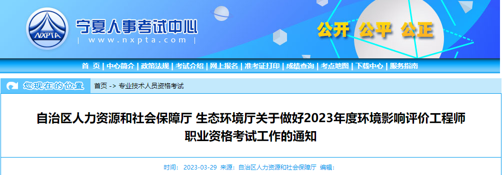 原文標(biāo)題:寧夏自治區(qū)人力資源和社會(huì)保障廳 生態(tài)環(huán)境廳關(guān)于做好2023年度環(huán)境影響評(píng)價(jià)工程師職業(yè)資格考試工作的通知