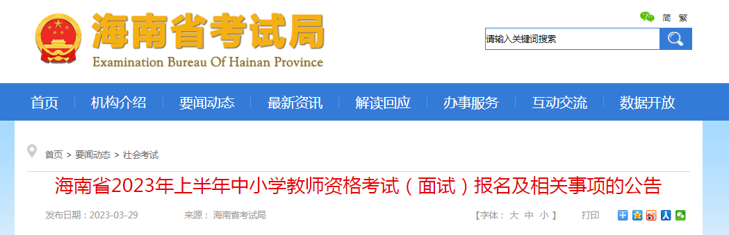 原文標(biāo)題:海南省2023年上半年中小學(xué)教師資格考試(面試)報名及相關(guān)事項的公告