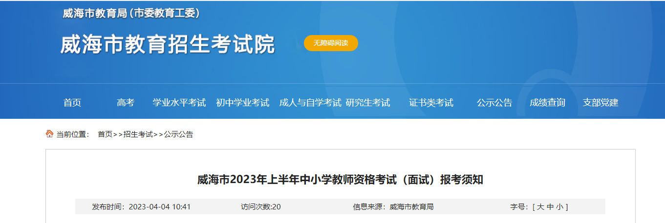 原文標題:威海市2023年上半年中小學教師資格考試(面試)報考須知
