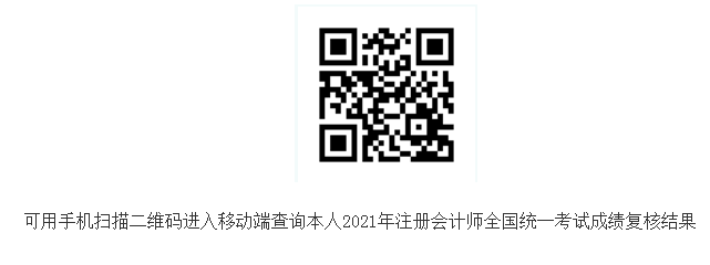 根據(jù)《注冊會計(jì)師全國統(tǒng)一考試辦法》和《注冊會計(jì)師全國統(tǒng)一考試成績復(fù)核辦法》的規(guī)定,財(cái)政部注冊會計(jì)師考試委員會辦公室對申請2021年注冊會計(jì)師全國統(tǒng)一考試成績復(fù)核考生的成績進(jìn)行了復(fù)核。現(xiàn)將成績復(fù)核結(jié)果公布,請河南考生即日起登錄“注冊會計(jì)師全國統(tǒng)一考試網(wǎng)上報(bào)名”系統(tǒng)(https://cpaexam.cicpa.org.cn),也可用手機(jī)掃描公告所附二維碼進(jìn)入移動端,查詢本人2021年注冊會計(jì)師全國統(tǒng)一考試成績復(fù)核結(jié)果。