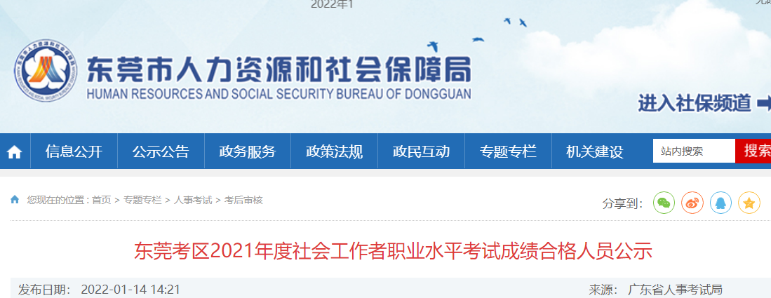從東莞市人力資源和社會保障局獲悉,2021年廣東東莞社會工作者職業(yè)水平考試成績合格人員公示已公布,請相關(guān)人員仔細(xì)閱讀,具體詳情如下: