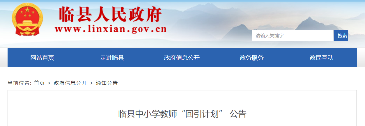 2021年11月8日縣中小學(xué)教師回引工作領(lǐng)導(dǎo)組在呂梁人事人才網(wǎng)、臨縣電視臺、臨縣人民政府網(wǎng)站發(fā)布教師回引計(jì)劃公告。
