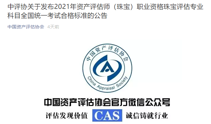 小編根據(jù)中國資產(chǎn)評估協(xié)會發(fā)布“中評協(xié)關(guān)于發(fā)布2021年資產(chǎn)評估師(珠寶)職業(yè)資格珠寶評估專業(yè)科目全國統(tǒng)一考試合格標準的公告”得知,山西2021年資產(chǎn)評估師考試合格標準已公布,珠寶鑒定與評估60分(試卷滿分100分),珠寶評估實務(wù)60分(試卷滿分100分)。