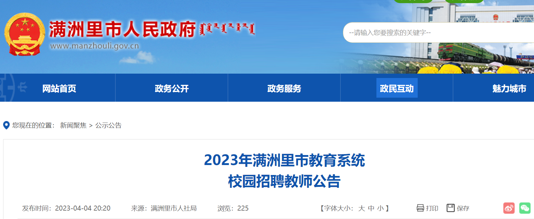 原文標題:2023年滿洲里市教育系統(tǒng)校園招聘教師公告