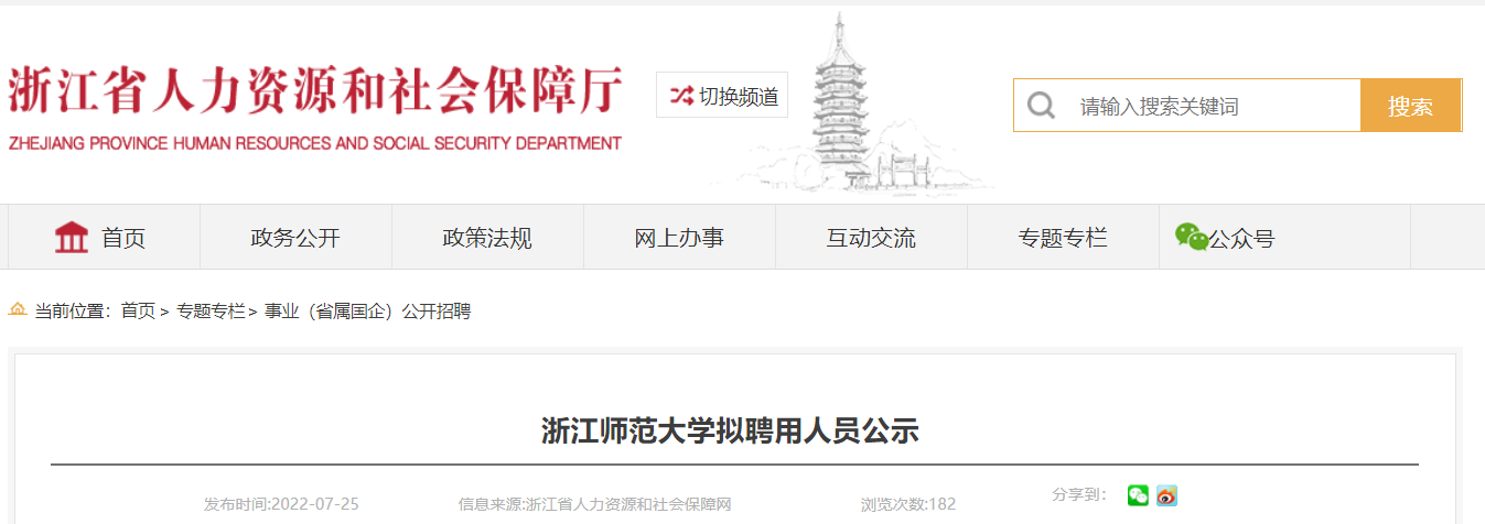 2022浙江師范大學擬聘用人員公示已發(fā)布,公示時間:2022年7月25日至2022年8月2日,現(xiàn)將原文發(fā)布如下: