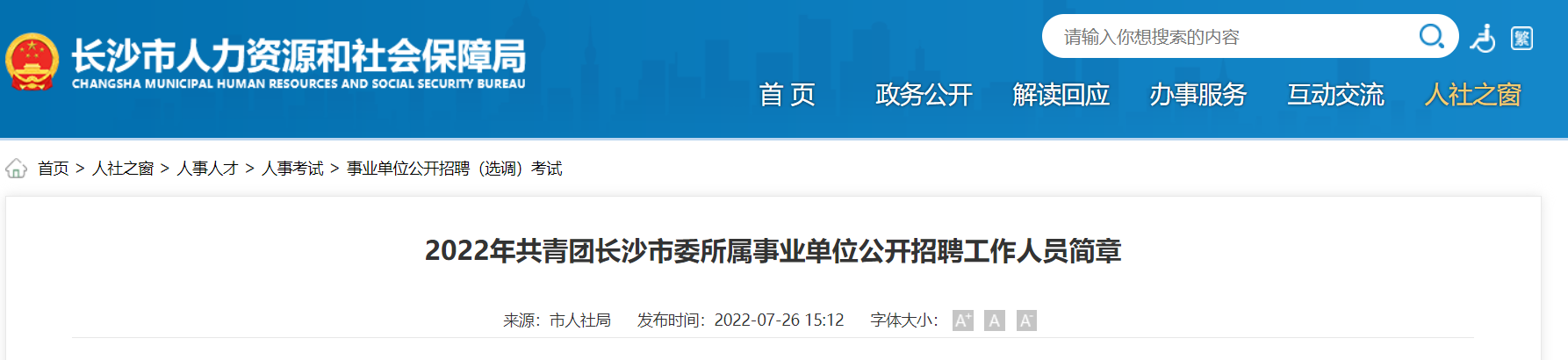 2022湖南省共青團(tuán)長(zhǎng)沙市委所屬事業(yè)單位招聘公告已發(fā)布。網(wǎng)絡(luò)報(bào)名時(shí)間:2022年7月29日(周五)9:00—8月3日(周三)16:30?,F(xiàn)將招聘公告原文發(fā)布如下: