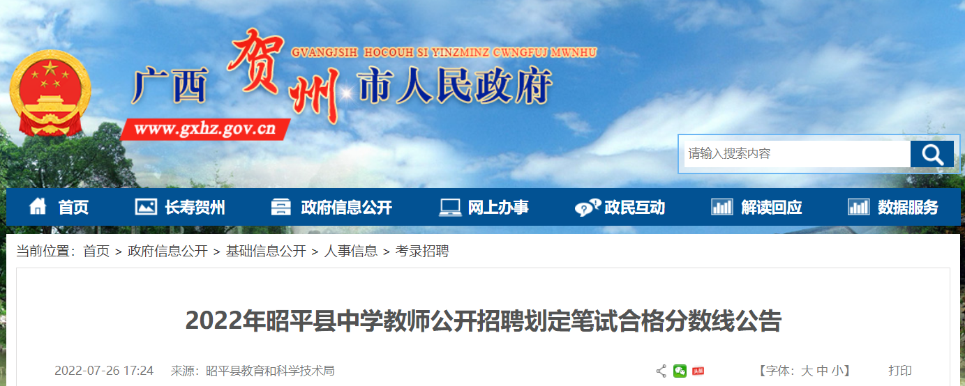 2022年廣西賀州昭平縣中學教師公開招聘劃定筆試合格分數線公告已發(fā)布,現將原文發(fā)布如下: