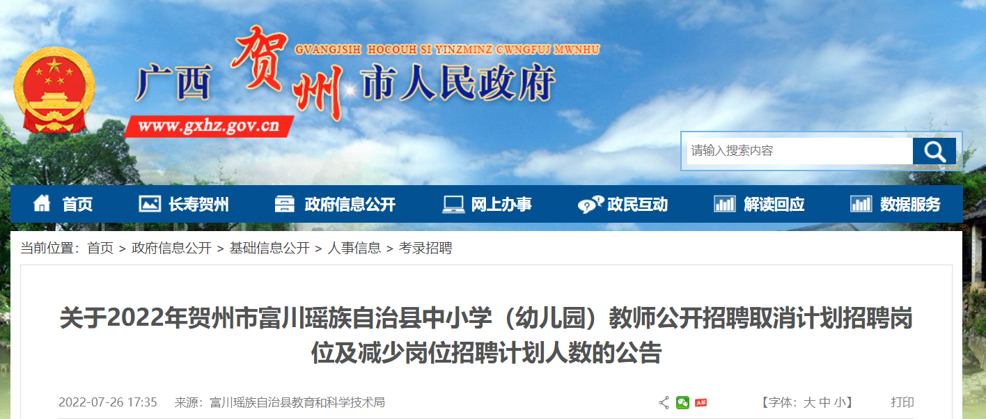2022廣西賀州市富川瑤族自治縣中小學(xué)幼兒園教師招聘取消崗位及減少崗位計劃人數(shù)公告已發(fā)布,現(xiàn)將原文發(fā)布如下: