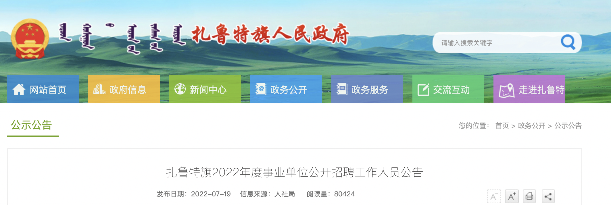 6.面試具體時間另行通知,具體通知詳見扎魯特旗人民政府網(wǎng)。