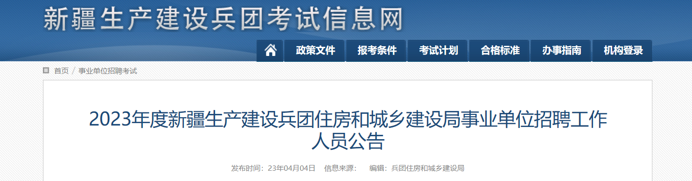 原文標(biāo)題:2023年度新疆生產(chǎn)建設(shè)兵團(tuán)住房和城鄉(xiāng)建設(shè)局事業(yè)單位招聘工作人員公告