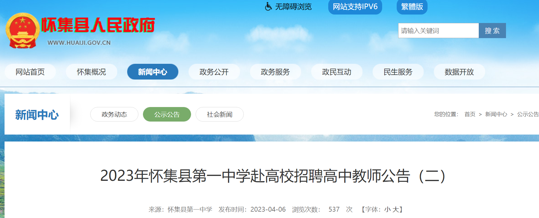 根據(jù)《廣東省事業(yè)單位公開招聘人員辦法》(廣東省人民政府令第139號)等文件有關規(guī)定,并結合懷集縣第一中學教育教學實際,2023年我校面向普通高等院校畢業(yè)生招聘高中教師3名。現(xiàn)將有關事項公告如下:一、招聘崗位