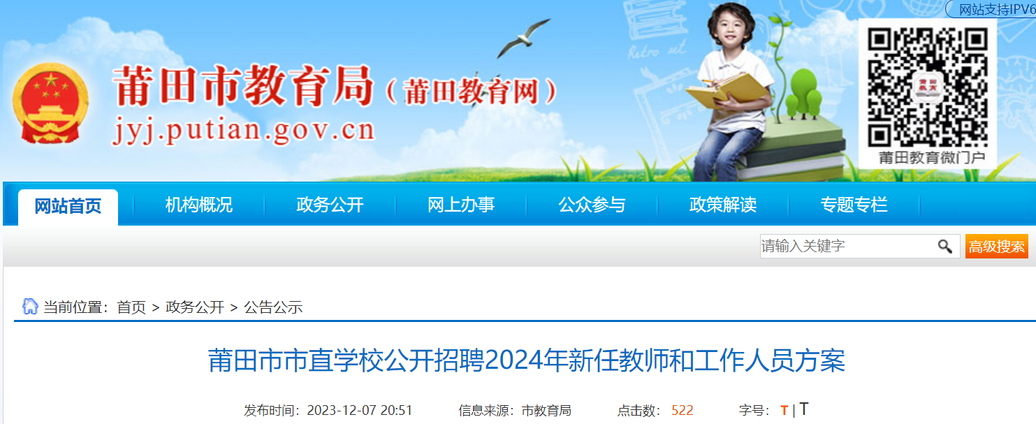 在莆田市人社局(http://rsj.putian.gov.cn)、莆田市教育局(http://jyj.putian.gov.cn)、北大附中莆田學(xué)校(https://www.pkuschool.edu.cn/putian.html)等有關(guān)網(wǎng)站發(fā)布招聘信息。