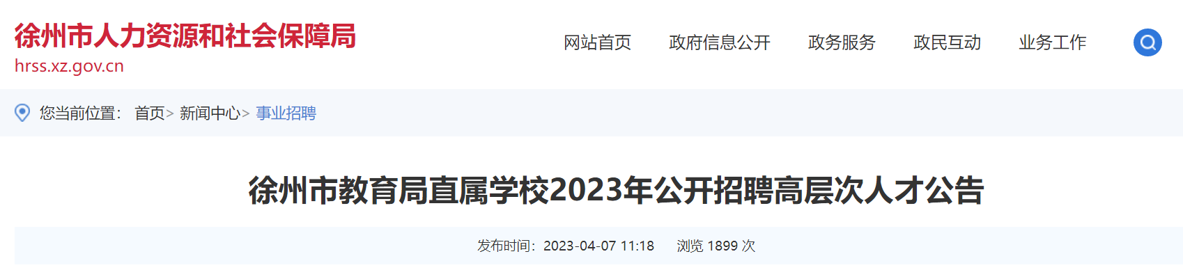 根據(jù)《事業(yè)單位人事管理條例》《江蘇省事業(yè)單位公開招聘人員辦法》(蘇辦發(fā)〔2020〕9號)等有關規(guī)定,結合《徐州市2023年市直事業(yè)單位高層次人才目錄》與我市教育發(fā)展需要,經(jīng)研究決定,面向社會公開招聘71名高層次人才?,F(xiàn)將有關事項公告如下。