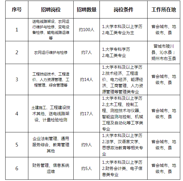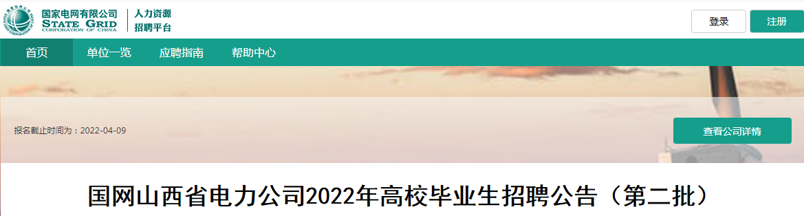 2022年國網(wǎng)山西省電力公司高校畢業(yè)生招聘公告【152人】已發(fā)布,網(wǎng)絡(luò)報(bào)名時(shí)間為:2022年4月9日截止,現(xiàn)將招聘公告原文發(fā)布如下: