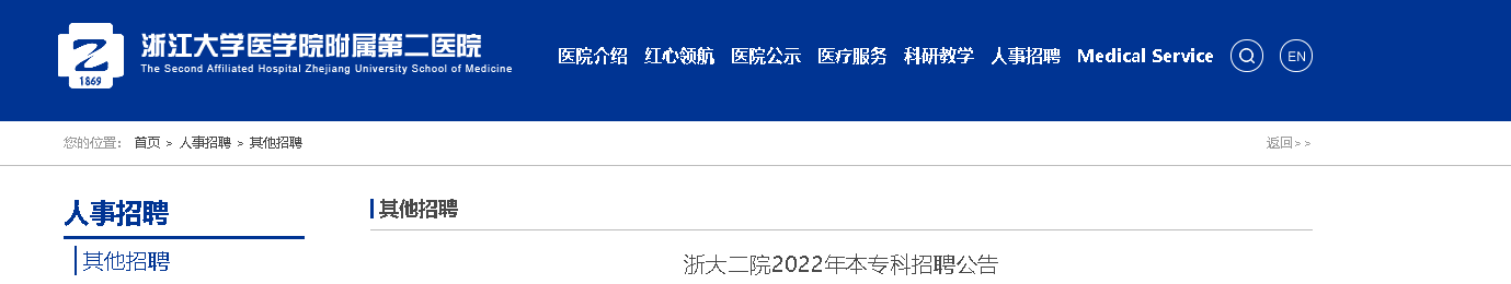 2022浙江大學(xué)醫(yī)學(xué)院附屬第二醫(yī)院本專科招聘51人,報(bào)名時(shí)間:2022年4月6日截止,逾期者可不接受報(bào)名,現(xiàn)將招聘公告原文發(fā)布如下: