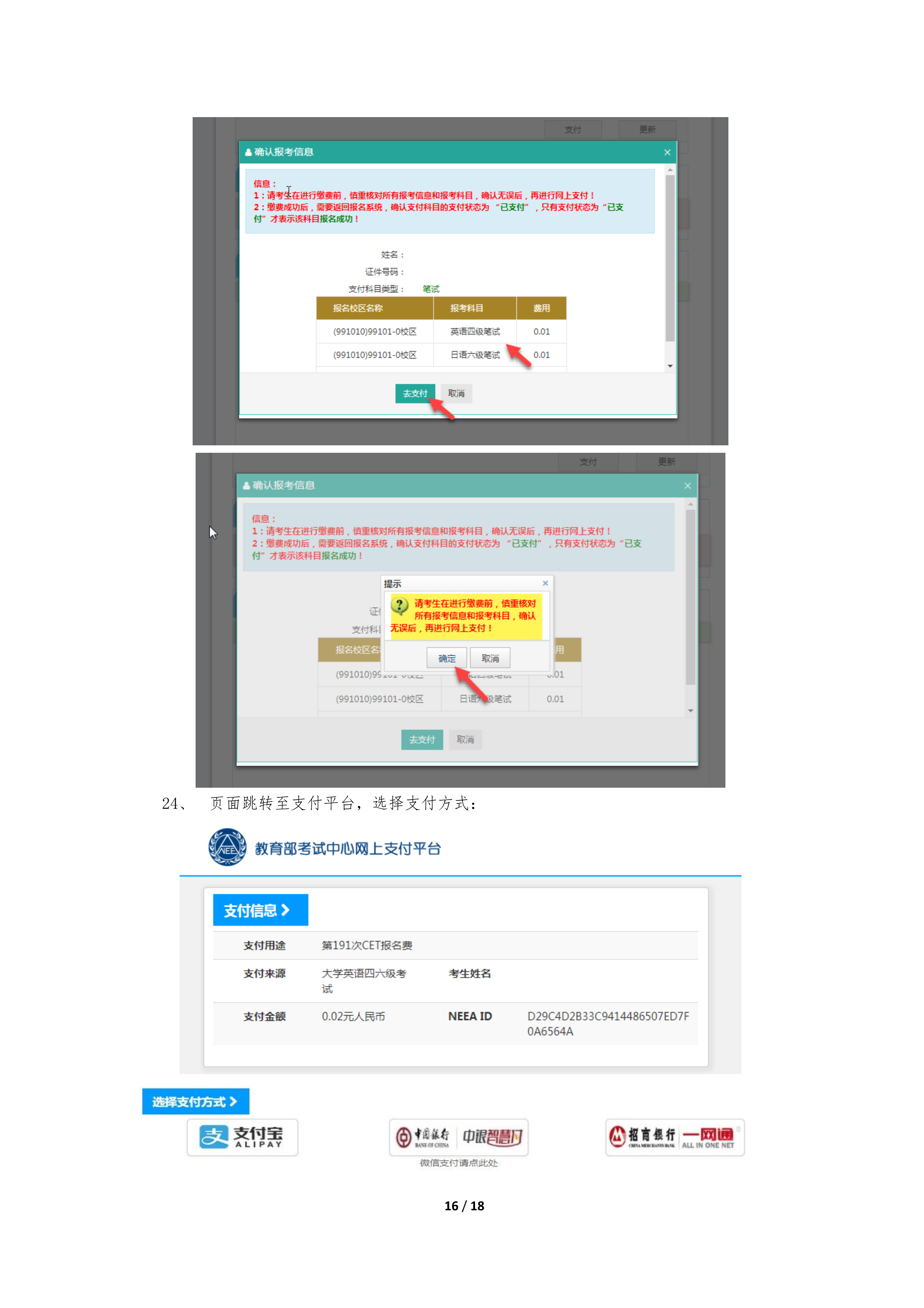 報名與繳費地址:http://cet-bm.neea.edu.cn??忌鷪竺绊氄J真閱讀并充分了解網(wǎng)站首頁的考生須知、報名流程、常見問題、成績報告單、新動態(tài)等相關信息,同時,務必關注本校報名通知。
