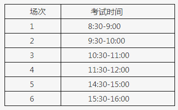 英語聽說機考每天最多安排6場,每場考試時間約30分鐘。考試具體安排如下: