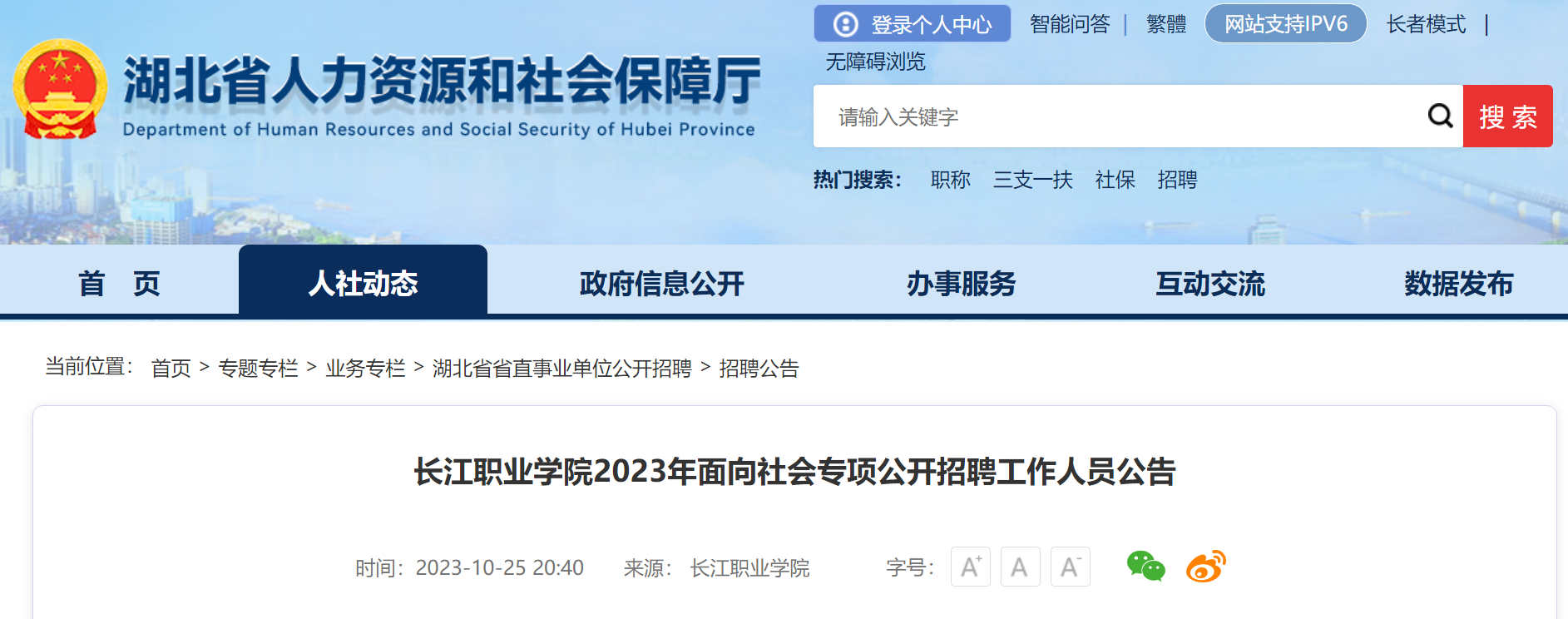 (http://rst.hubei.gov.cn/bmdt/ztzl/hbsszsydwgkzp/zpgg/)和長(zhǎng)江職業(yè)學(xué)院網(wǎng)站(https://www.cjxy.edu.cn/)為本次專項(xiàng)公開招聘公告發(fā)布網(wǎng)站。長(zhǎng)江職業(yè)學(xué)院人力資源處招聘系統(tǒng)(http://rs.cjxy.edu.cn/)為本次專項(xiàng)公開招聘工作情況、相關(guān)通知、錄取情況、結(jié)果公示等相關(guān)信息發(fā)布網(wǎng)站,請(qǐng)考生注意查看相關(guān)信息。