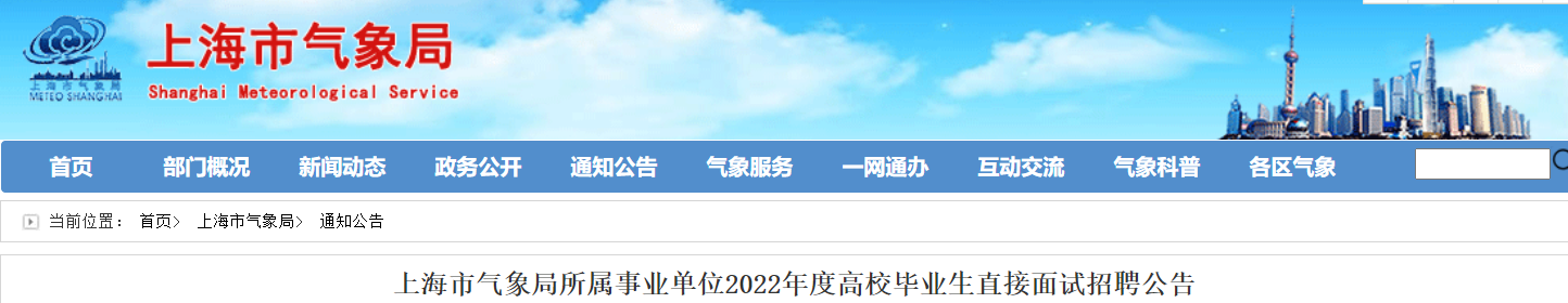 2022上海市氣象局所屬事業(yè)單位高校畢業(yè)生直接面試招聘公告【27人】已發(fā)布。報名時間于11月16日16:00前。為您整理了招聘條件和報名流程,供您參考。