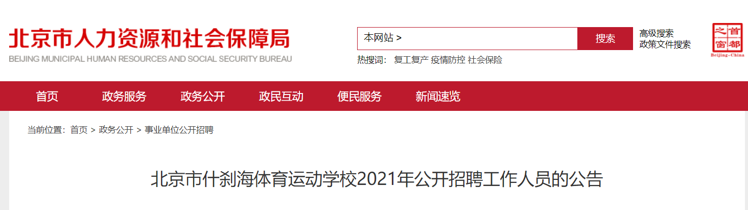 北京市什剎海體育運動學校2021年公開招聘工作人員公告已發(fā)布,報名時間:2021年11月19日,現(xiàn)將招聘公告原文發(fā)布如下: