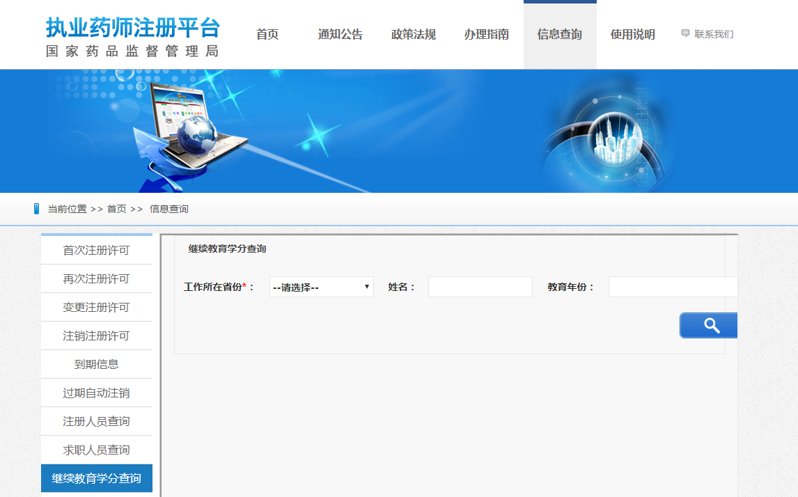 點擊進入>>>云南執(zhí)業(yè)藥師繼續(xù)教育學分查詢入口【國家藥品監(jiān)督管理局】