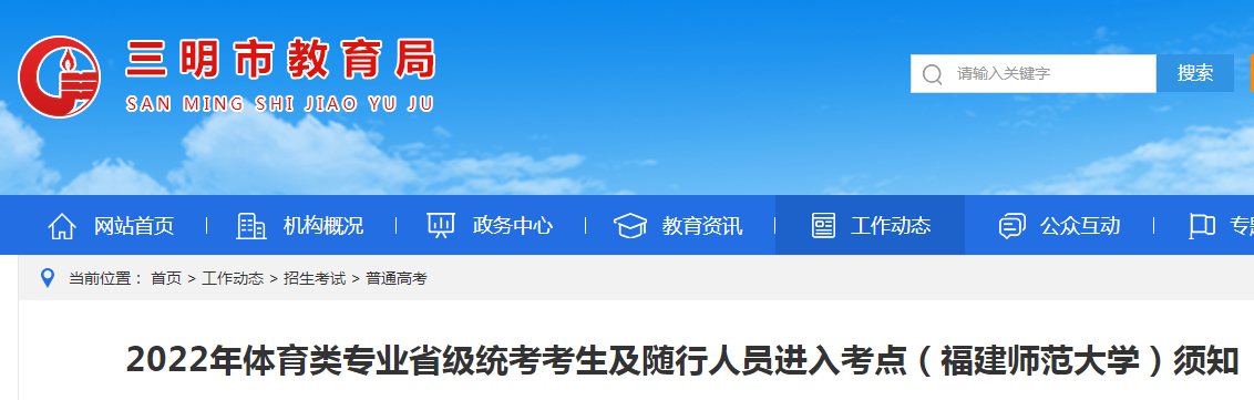 從福建省三明市教育局了解到,2022年體育類(lèi)專(zhuān)業(yè)省級(jí)統(tǒng)考考生及隨行人員進(jìn)入考點(diǎn)(福建師范大學(xué))須知,具體如下:
