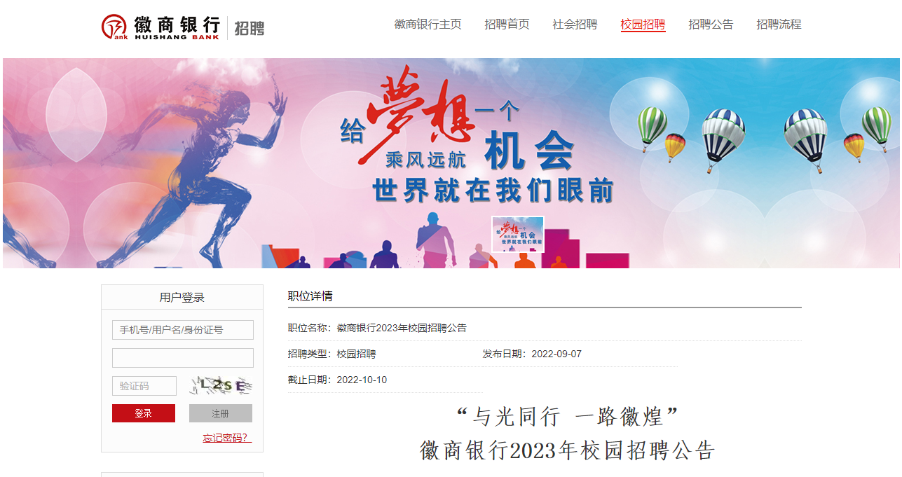 原文標(biāo)題:“與光同行 一路徽煌”徽商銀行2023年校園招聘公告