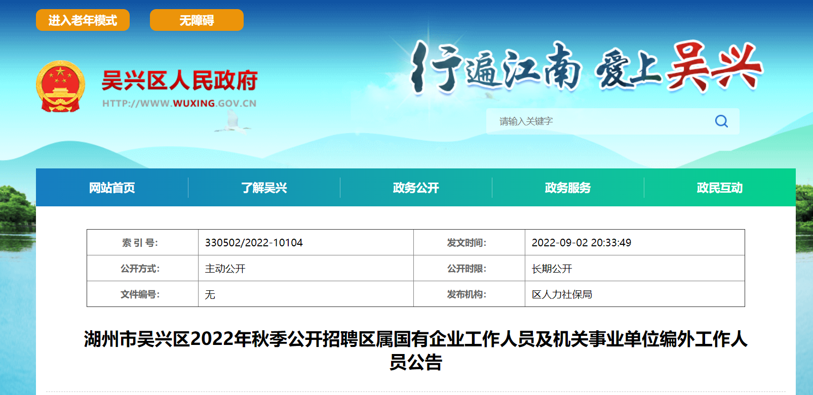 原文標(biāo)題:湖州市吳興區(qū)2022年秋季公開招聘區(qū)屬國有企業(yè)工作人員及機關(guān)事業(yè)單位編外工作人員公告
