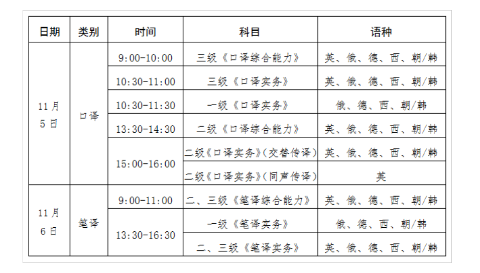 從寧夏政務服務網(wǎng)發(fā)布的《 2022年下半年寧夏翻譯資格(水平)考試工作的通知》得知,2022年下半年寧夏翻譯資格(水平)考試時間及科目已公布,考試時間為11月5日-11月6日,具體詳情如下: