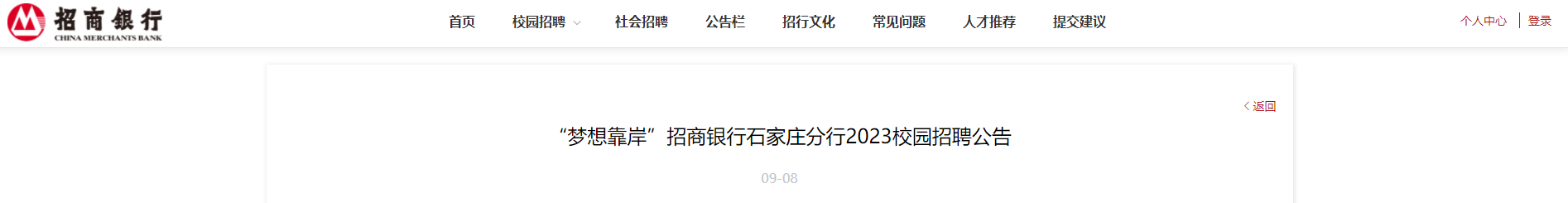 原文標(biāo)題:“夢想靠岸”招商銀行石家莊分行2023校園招聘公告